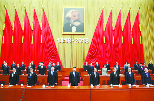 中央党政军群各部门和北京市主要负责同志,各民主党派中央、全国工商联负责人和无党派人士代表,中央宣传文化单位领导班子成员,参加纪念马克思诞辰200周年理论研讨会、第二届世界马克思主义大会的代表,首都社科理论界和高校马克思主义学院师生代表、基层党员和群众代表,解放军和武警部队官兵代表等约3000人参加大会。