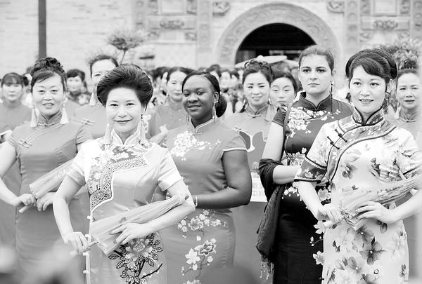5月5日,旗袍爱好者们亳州老街上进行展示。当日,2018年中国(亳州)国际旗袍文化节在安徽亳州开幕,吸引了国内外600多名旗袍爱好者参加,开幕式上进行了旗袍展示、民族乐器演奏、旗袍扇舞表演等节目。