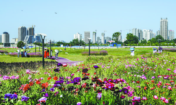 5月7日,游人在汉中市滨江新区花园游览。 “5·12”汶川地震时,与四川毗邻的陕西省汉中市宁强、略阳等县遭受重创。地震十周年之际,记者再次来到曾经满目疮痍的灾区,看到的是汉中城乡面貌已焕然一新。十年来,汉中市坚持以灾后恢复重建为契机,攻坚克难,谱写了经济大发展、城乡大变化、民生大改善的崭新篇章。 新华社发