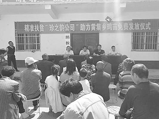 5月13日,淮阳县黄集乡政府举行简短仪式,欢迎该县政协委员、郑州珍之韵公司董事长丁伟为该乡贫困户免费发放鸡苗。本次为签约的建档立卡贫困户免费发放鸡苗3000只,标志着丁伟助力家乡脱贫攻坚落到了实处。记者 刘彦章 摄