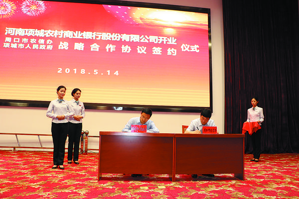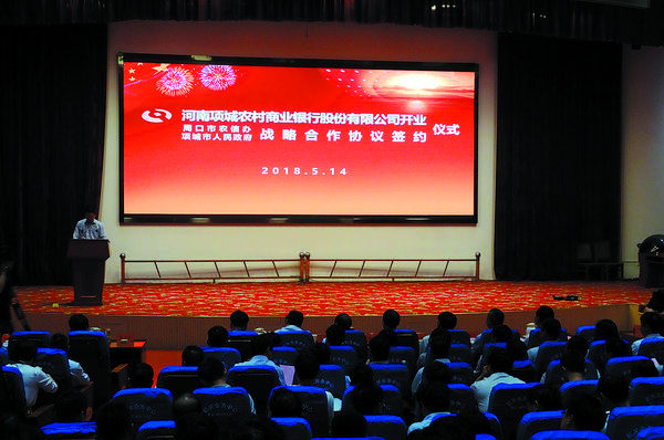 5月14日上午,河南项城农村商业银行股份有限公司开业暨周口市农信办与项城市人民政府战略合作签约仪式在项城市党政综合楼会务中心举行。省联社、周口市政府金融办、周口银监分局、人行周口中心支行、周口市农信办,项城市委、市政府、市人大、市政协领导,各县市区农信社(农商银行)理事长(董事长),项城市各镇办、市直各单位主要负责人,项城农商银行领导班子、董事、监事、中层管理人员和员工代表300余人共同见证了这一具有历史意义的重要时刻。