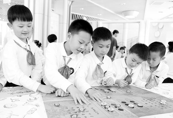 《汉字》巡展绽放申城 5月15日,小学生们在上海儿童博物馆体验甲骨文古诗词填空游戏。当日,由上海市语言文字工作委员会办公室和中国文字博物馆打造的《汉字》巡展在上海儿童博物馆拉开序幕。本次展览将持续到6月底,其核心设计理念是“让古籍里的文字活起来”,为青少年提供生动活泼的汉字文化体验。新华社发