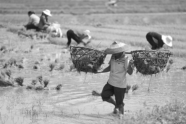 5月16日,在贵州省遵义市余庆县大乌江镇凉风村,农民在田间劳作。小满将至,气温升高、雨水渐多,贵州省遵义市余庆县的农民抢抓农时打田插秧,为收获季打下基础。新华社发