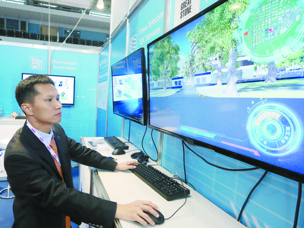 5月15日,在白俄罗斯首都明斯克举行的白俄罗斯国际通信和信息技术展上,一名中国电信工作人员展示通信技术。第25届白俄罗斯国际通信和信息技术展15日在明斯克开幕,华为和中国电信等中国企业参展。 新华社发