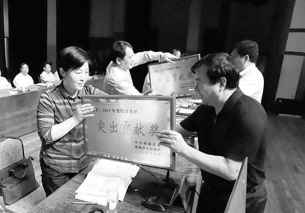 本报讯(记者 徐松 通讯员 崔彦林陶杰 文/图) 5月18日上午,郸城县召开2017年度综合考评表彰暨脱贫攻坚、“六村共建”工作会议,总结2017全县工作硕果,指导新征程、部署新任务。
