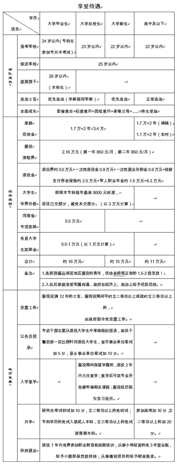 8.优待政策办理。与男兵要求相同。