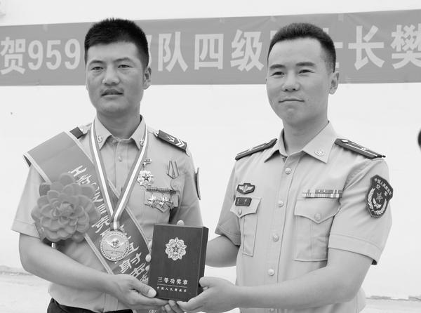 今年4月,樊延强在空降兵群众性练兵比武活动反坦克导弹组射击技能项目中荣获第一名,被部队授予三等功。为激发官兵干事创业的积极性,营造军属光荣的浓厚氛围,该部队派专人到樊延强家乡送来喜报,也为他的亲属送来了慰问和关怀。 ( 卢付昌 摄)