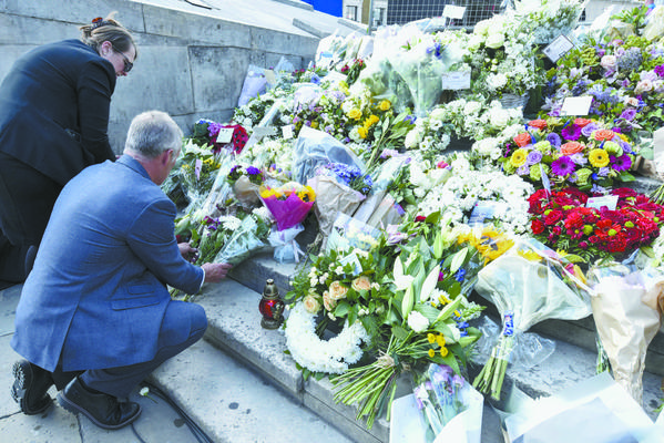 6月3日,在英国伦敦,人们为伦敦桥恐袭遇难者献上鲜花。