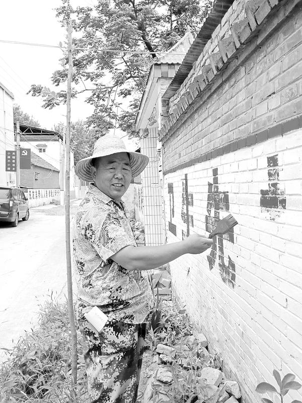 沈丘县李老庄后湖村有个名叫张健的人。这几天,他头顶烈日,戴着草帽,在农房的围墙上书写王羲之的《兰亭序》等作品。因为他头戴草帽创作“书法墙”,人们称其为“草帽哥”。据了解,三年前,中国金融书协副主席马奔在后湖村创立了“中国乡村文化俱乐部”。如今,俱乐部得到快速发展,村中文化气息浓厚,已建成农家书院、农民书法工作室数十家,培养书法爱好者百余人。马国勤 摄