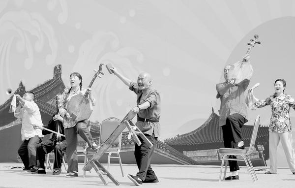 6月15日,来自陕西的艺人在开幕式上表演华阴老腔。