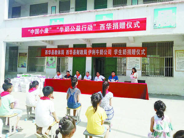 为加大对贫困家庭学生的资助力度,6月15日,“中国小康 ” “牛奶公益行动”在西华县西华营镇后套小学举行捐赠仪式,为该校171名学生捐赠学生奶近200件。张文庆 任仪 摄