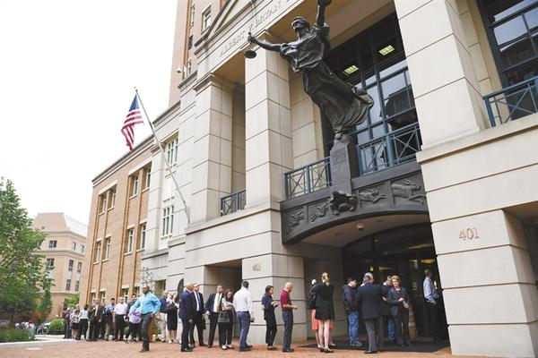 7月31日,人们排队等待进入美国弗吉尼亚州亚历山德里亚市的联邦地区法院。美国总统特朗普竞选团队前竞选经理保罗·马纳福特7月31日在位于美国弗吉尼亚州亚历山德里亚市的联邦地区法院首次出庭受审,成为由“通俄”调查特别检察官罗伯特·米勒起诉对象中首个出庭受审的人。 新华社发
