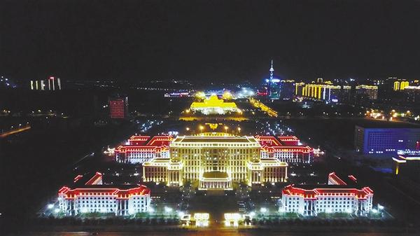 夜幕降临,漫步中心城区,处处灯光璀璨,霓虹闪烁。一幢幢楼宇,一座座桥梁,一棵棵树木,身穿“霓虹外衣”,被装扮得流光溢彩(如图)。