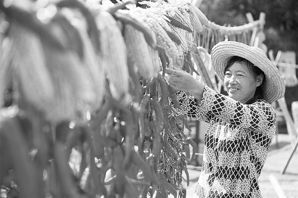 9月12日,呈坎古村村民在晾晒辣椒、玉米等农作物。