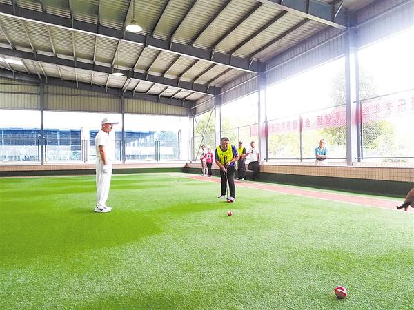 9月13日下午,备战省十三运会社会组门球比赛的运动员在周口市体育中心门球场适应场地。据介绍,本次比赛分为成人组团体赛和老年组团体赛,共有来自全省各地的25支代表队338名运动员参赛。记者 窦娜 摄