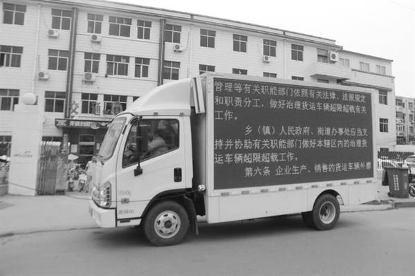 三是电子显示屏滚动宣传。在各县(市、区)执法所办公楼、办事大厅、流动检测车、固定治超站的电子显示屏上,滚动宣传《治超条例》。