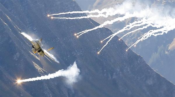 瑞士空军在阿尔卑斯山区进行训练表演