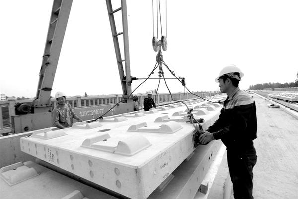 连日来,鲁南高铁无砟轨道施工作业持续推进。鲁南高铁东起山东日照,向西经临沂、曲阜、济宁、菏泽,与郑徐客运专线兰考南站接轨,预计2019年年底建成通车。 新华社发
