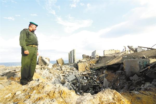 ① 空袭过后 10月17日,在加沙地带城市拉法,一名巴勒斯坦安全部队成员检查空袭后的废墟。以色列17日出动战机轰炸位于加沙地带的20多个军事目标。