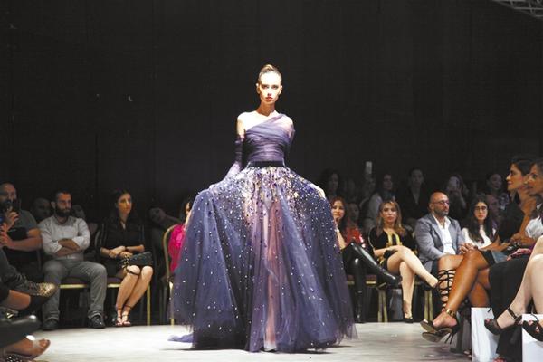 10月15日,在黎巴嫩首都贝鲁特举办的第三届“设计师与品牌”时装秀上,一名模特展示科威特品牌La Bourjoisi的作品。