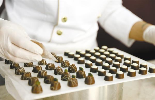 ④ 巧克力节 10月19日,在意大利佩鲁贾举行的“欧洲巧克力节”上,一名工作人员现场制作巧克力。