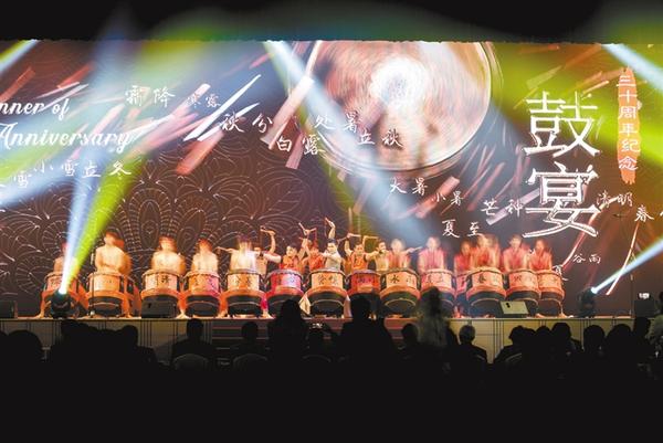 10月20日,在马来西亚雪兰莪州的华总大厦,鼓手在“鼓宴”活动上表演。马来西亚二十四节令鼓协会当晚举行大型“鼓宴”,纪念二十四节令鼓创立30周年。新华社发