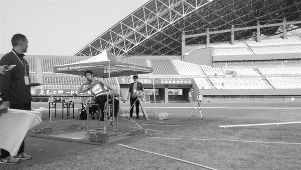 10月22日下午,在河南省第七届残疾人运动会跳高和铅球项目比赛中,参赛选手顽强拼搏,展示了积极向上的精神面貌。图为铅球比赛现场。②5记者 牛思光 摄