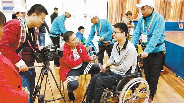 10月24日上午,在省第七届残疾人运动会乒乓球比赛现场,刚刚结束比赛的我市选手陈营亮在接受记者采访时,高兴地说:“参加比赛不但表现了自我,也让我认识了很多朋友。”