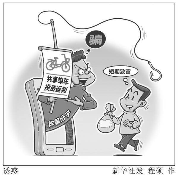 新疆警方近日跨省侦破“易骑点”共享单车投资返利电信诈骗案,300余名受害人涉及全国各地,涉案金额200多万元。警方对此提示,不要轻信短期“致富”的诱惑。