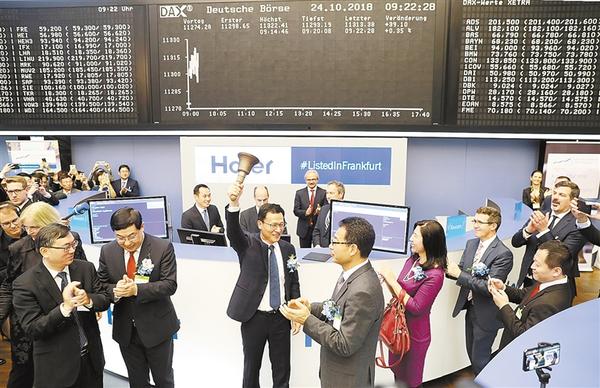 10月24日,在德国法兰克福证券交易所,嘉宾出席青岛海尔股份有限公司于中欧所D股市场上市仪式。