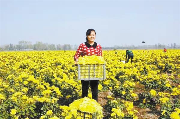 近日,太康县五里口乡菊子秀扶贫就业(帮扶)基地千亩茶菊竞相盛开,金黄一片,美丽芬芳。该基地组织周围贫困村民以每斤0.5元的价格采摘,平均每人每天有百元的收入,实现了企业增效、贫困村民快速脱贫的“双赢”目标。