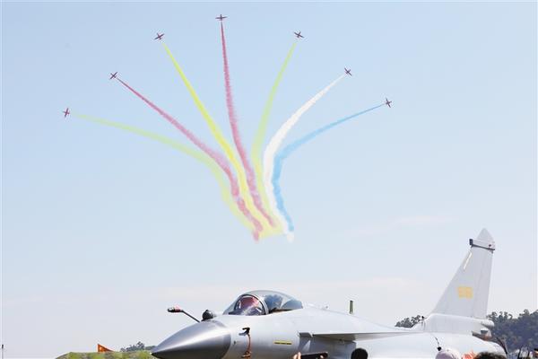 首次亮相珠海航展的空军航空大学“红鹰”飞行表演队,以飞出极限、飞出惊险、飞出壮观的震撼表演,展示了飞行表演队的过硬实力,彰显了中国空军追逐飞天梦想的豪情壮志。新华社记者 李刚 摄