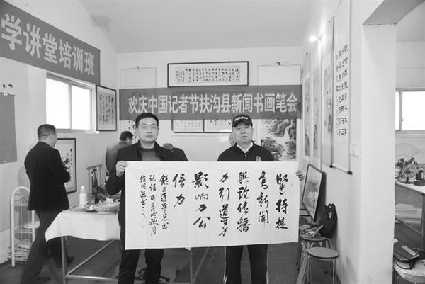 11月6日是第十九个中国记者节。扶沟县张坡诗词名人书画馆举行了欢庆中国记者节扶沟县新闻书画笔会,省书法家协会的书法家和县宣传部门的书画爱好者齐聚一堂,以举行书画笔会的形式向新闻媒体人庆贺节日。据悉,当日创作的书画作品将进行义卖,筹集的爱心善款将全部用于扶沟县扶危济困事业。②7