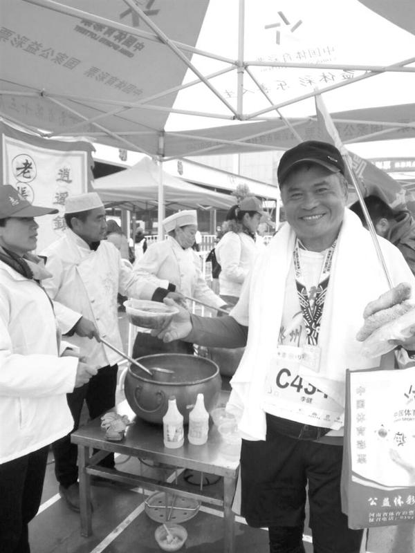 提起周口,“周口胡辣汤”可谓声名在外。此次马拉松赛事,主办方为了让选手品尝到周口香辣可口的胡辣汤,特意将周口4家不同口味的胡辣汤“端”到比赛现场,让很多跑友过了一把胡辣汤瘾。图为参赛选手品尝胡辣汤。记者 张志新 摄