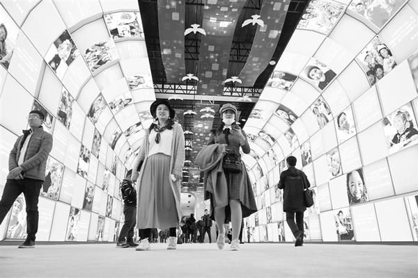 11月17日,观众在展览上参观“大美中国”影像长廊。“伟大的变革——庆祝改革开放40周年大型展览”11月13日在国家博物馆隆重开幕。自开幕以来,展览吸引了众多参观者。新华社发