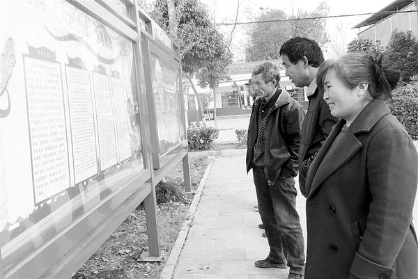 近段时间以来,沈丘县周营镇以“六村共建”为契机,紧紧抓住乡风文明建设这个“牛鼻子”,通过精心打造一批图文并茂、群众喜闻乐见的多彩“文化墙”或固定宣传栏,培育文明新风,助力乡村振兴。图为11月21日,该镇马营村的群众正驻足观看“会说话的文化墙”。