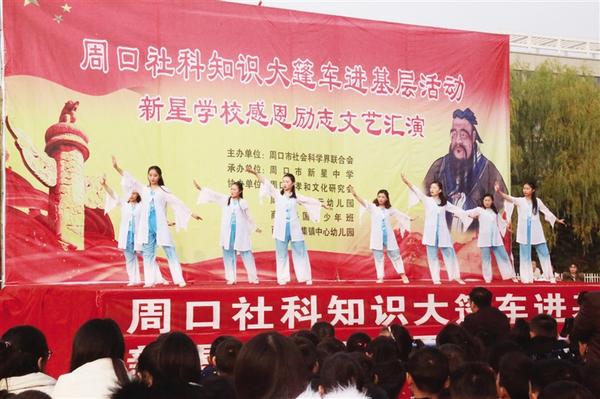 为深入推进中华优秀传统文化全方位融入学校教育,11月24日下午,由周口社会科学界联合会主办,周口新星学校承办的周口社科知识大篷车进基层活动暨新星学校感恩励志文艺汇演在周口新星学校举行。 记者 陈军强 摄