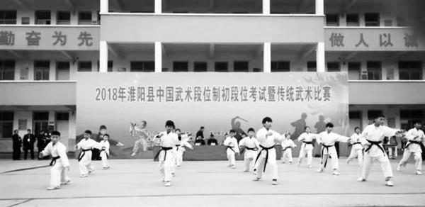 12月1日至2日,中国武术段位制初段位考试暨传统武术比赛在淮阳豫东少林文武学校举行,来自全县39支代表队的700多名运动员参加“武考”。此次段位制考试分为中国武术段位制段前级和初段位。参加考试的学员年龄最小的仅6岁,最大的81岁。宋新礼 摄