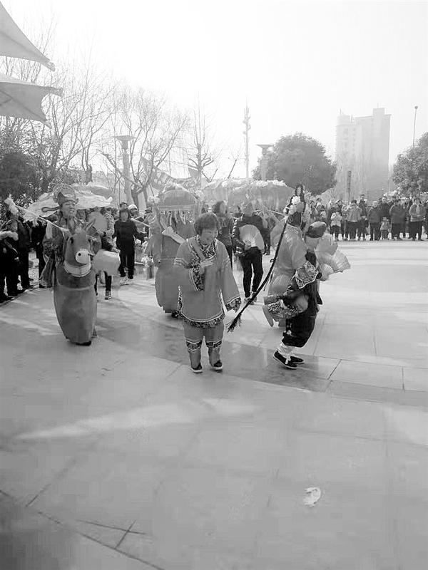 元宵节过后,天气逐渐转暖。2月24日,在周口中心城区大庆路东桥南的桥头公园里,周口市康湾村民间艺术协会的大妈们表演了划旱船、担经挑、大头吼等多项民间艺术,吸引过往路人纷纷驻足观看。记者 魏东 摄