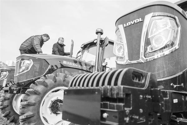 2月24日,农民在江苏省盱眙县农机大市场挑选农机。
