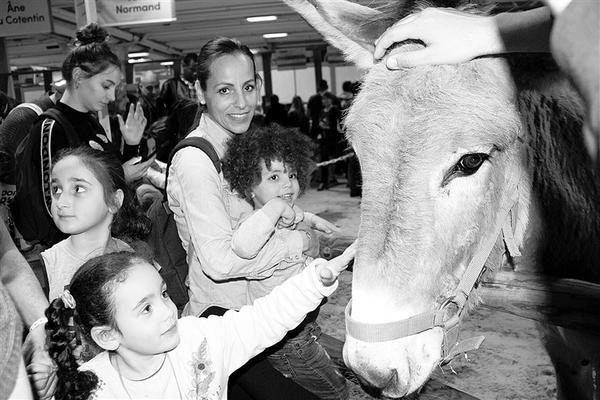 2月26日,在法国巴黎举行的第56届法国国际农业博览会上,小朋友们观看现场展示的动物。