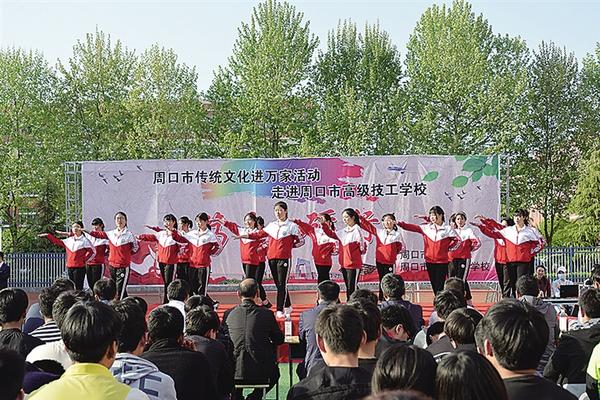 2018年和2019年,周口市高级技工学校的孩子们,连续两年在全市春节晚会、伏羲春晚、省运会、残运会等活动中贡献节目12个,赢得了市委、市政府领导以及全市人民的一致称赞。今年春节广场读书文化活动,周口市高级技工学校的学生倾情演绎经典诵读,为全市人民文明过节奉献了一场视听盛宴。漯河、驻马店、郑州等地的技师学院纷纷来到周口市高级技工学校考察参观学习,考察学校“品学并重、知行合一”的办学理念和鲜活实绩。学校先后被评为“河南省特色学校”“河南省高技能人才培训基地”“河南省全民技能振兴万人培训基地”“河南省校企合作先进单位”等荣誉称号。