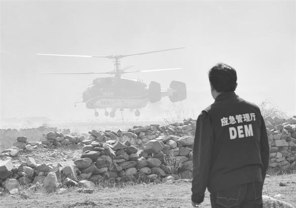4月2日,一架救援直升机准备起飞开展空中灭火工作。 新华社发