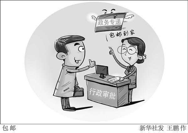 互联网时代,购物消费包邮已成常态。借鉴“包邮”思路,今年4月廊坊市行政审批局推出“政务专递”便民服务,为不能当场办结发证的企业和群众提供办件结果EMS快递送达服务。服务对象可自愿选择此项服务,只需提交材料后登记相关信息并填写寄送单即可。审批结束后,由EMS快递员将办结材料送到企业和群众手中。新华社发