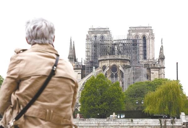 火灾过后 4月16日,在法国巴黎,一名老妇人在塞纳河畔望着“受伤”的巴黎圣母院。