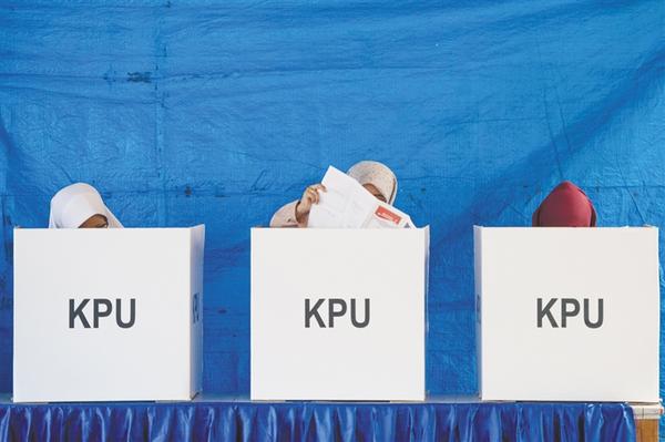 总统选举 4月17日,选民在印度尼西亚雅加达一处投票站投票。