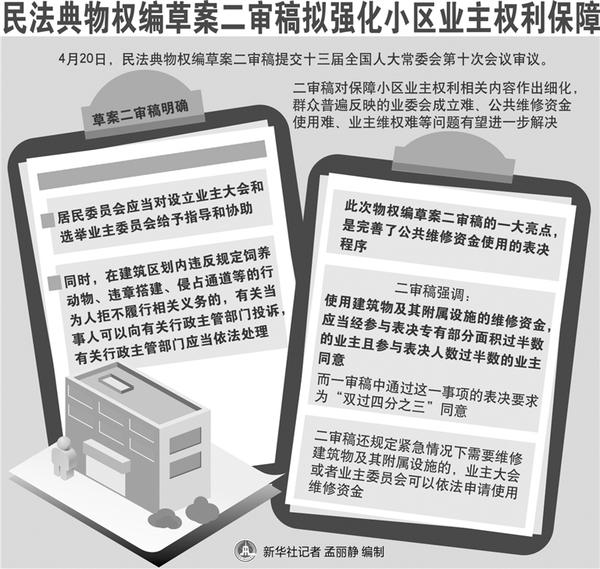 民法典物权编草案二审稿拟强化小区业主权利保障