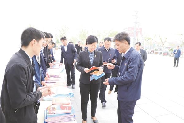 罗文阁等县四个班子领导边走边看,详细了解全民国家安全教育日宣传活动内容及取得的成效等,走近宣传咨询台与工作人员亲切交谈(如图),认真听取大家对以“坚持总体国家安全观,着力防范化解重大风险,喜迎中华人民共和国成立70周年”为主题的全民国家安全教育日宣传活动开展情况的介绍。通过实地查看,罗文阁对大家采取多种宣传形式,全面提高群众参与度,积极营造人人维护国家安全的浓厚氛围和取得的成效给予充分肯定。
