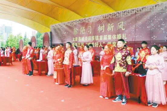4月26日,太康县举办“除陋习 树新风”集体婚礼暨“城关好人”颁奖仪式。此次活动由县网信办、文明办主办,县妇联、团县委协办,城关回族镇承办。图为集体婚礼现场。记者 马治卫 通讯员 张永俊 摄