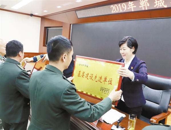 本报讯 (记者 徐松 文/图) 4月28日下午,郸城县2019年武装工作会议召开,深入贯彻落实习近平强军思想,传达学习省军区、市军分区党委全会精神,回顾总结2018年的武装工作,安排部署2019年的工作任务,为2018年工作突出的单位和个人颁奖(如图)。县委书记、县人武部党委第一书记罗文阁出席会议并讲话。县委常委、常务副县长王智华,县委常委、县人武部政委金仁旺,县人武部部长董连江等参加会议。